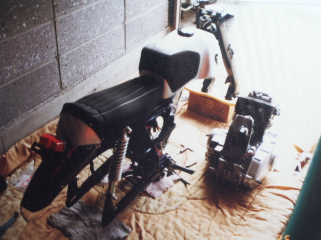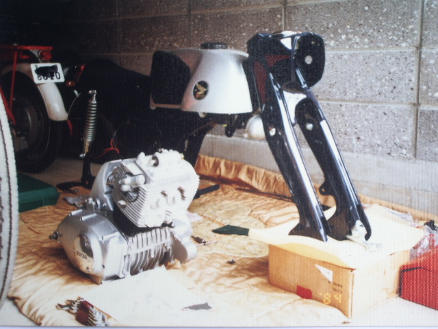 | 日本語 English Honda CB92 Restore ![]() 1984年4月、このCB92は錆び錆びの状態からレストアが始まりレストア後、 既に24年の年月が過ぎ去った。 *当時はデジカメという文明の利器がなく、カメラで撮影したものを デジカメで再撮影したもので、写りがよくありません。 :Restoration started in 1984 In April, 1984, this CB92 got rusty, and restoration began with the state of the rust. After restoration, 24 years already passed. * There was not a convenience called the digital camera so I photographed it with a film camera in those days. Therefore, I photographed these old photos with a digital camera again, but the images, are not good 外装のショットブラスト工程 24年間前といえば、ショットブラストが一般にも復旧し始めた頃であった。 全ての部品にショットブラストを施し、錆び除去を行った。 :Appearance after the shot blast process. It was about that time when shot blast had begun to spread generally 24 years ago. I shot blasted all parts which were rusted and removed it. エンジンの分解から組み立て工程 *ホンダサービスから供給された新品部品は全て組み込みました。 また同時にY部品も装備し、60年代のレーサー仕様に組み込み。 :Assembly process of the restored engine. * All the supplied new parts used for this CB92 from Honda service. 。 In addition, I installed the race parts based on 60's racer specifications. 完成後 完成後は乗っては玄関に上げての日々が続きました。 *CR110の後ろがCB92(写真撮影 1990年12月) :After restoration. I sometimes ran it after restoration, but this CB92 was almost stay in the house. * The CR110 is in front of the CB92(Photography December, 1990). ![]() 2002年 CB92のレストアから18年後、未だ健在な走りを見せているが、 Y部品の前後サスペンションを装備しているのでマグネシュームのホイルの スポーク部が楕円になりやむなくアルミホイルに交換。 (写真撮影 2002年5月)。 :Year 2002 18 years had passed from restoration of CB92, but still running well . However, I changed the front and rear suspension for a reac part, the magnesium rear wheel was damaged and so changed an aluminum wheel. (Photography May, 2002). ![]() 2008年 CB92のレストアから既に24年の歳月が経過しているが、その走りと 性能は衰えることが無く未だに13000rpmまで引っ張る性能を持っている。 (写真撮影 2008年7月) :Year 2008 24 years had already passed from restoration of CB92. However, the riding and the performance have not declined. This CB92 still has performance to 13,000rpm. (Photograph July, 2008) ![]() |